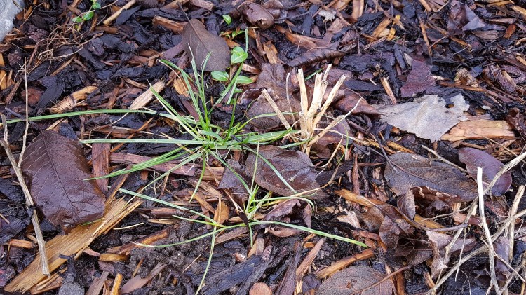 Was passiert eigentlich mit Rasen, wenn er über den Winter eine dicke Laubschicht drauf hat, durch die er schlecht Luft und Licht kommt? Für das neue Beet hatte ich nicht genug Pappe, also hab ich das Herbstlaub auf die künftige Beetfläche geharkt und hoffe, dass es den Rasen so weit schwächt, dass der Rindenmulch und die Blumen den Rest vertreiben können.
