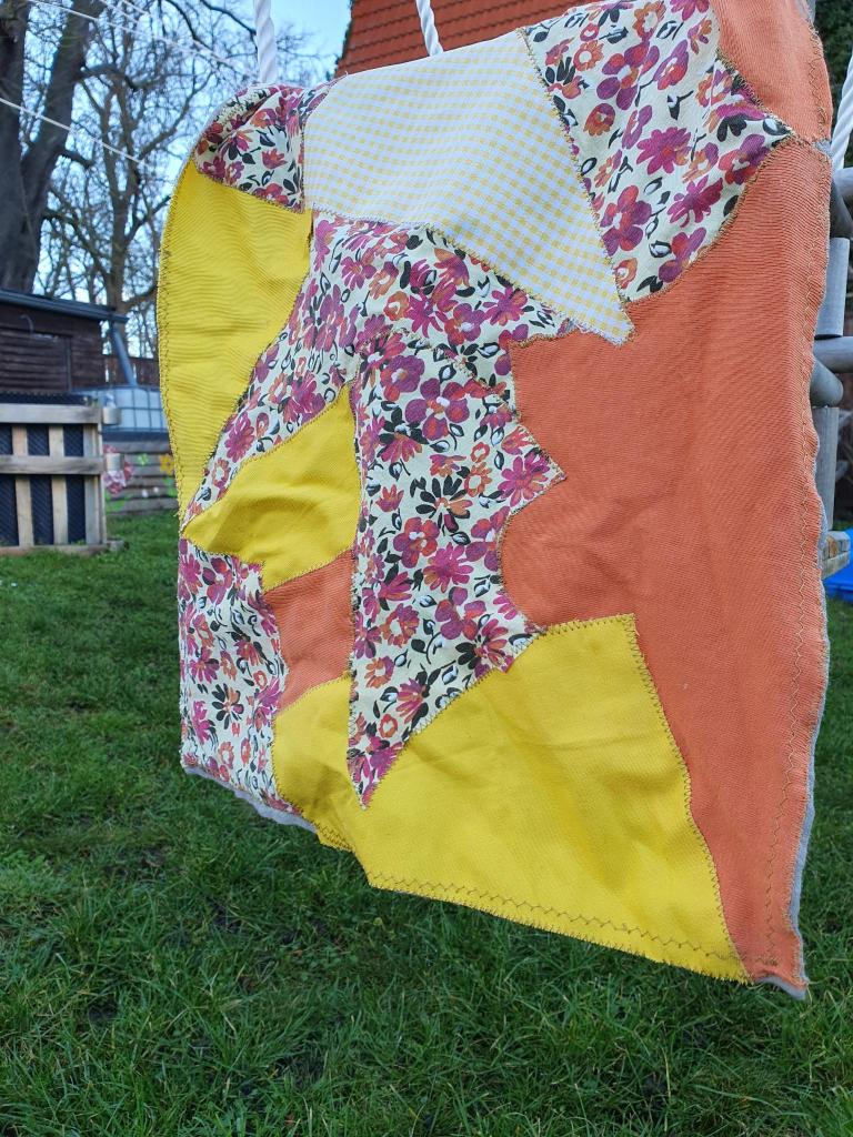 Visible Mending heißt diese Technik meines Wissens nach. Gut, man kann auch sagen, ich hab einen Flicken aufgenäht, aber das klingt ja nicht so schön neu-modern 😀 Die Idee des Visible Mending (deutsch: sichtbares reparieren) ist, dass man das Ausbessern nicht unauffällig oder unsichtbar gestaltet, sondern das Kleidungsstük damit aufwertet und ihm damit das gewisse Etwas gibt. Und mit ein bisschen kreativem Geschick wird das Endergebnis tatsächlich hübsch, auch – oder grade – wenn kleine Fehler mit drin sind.