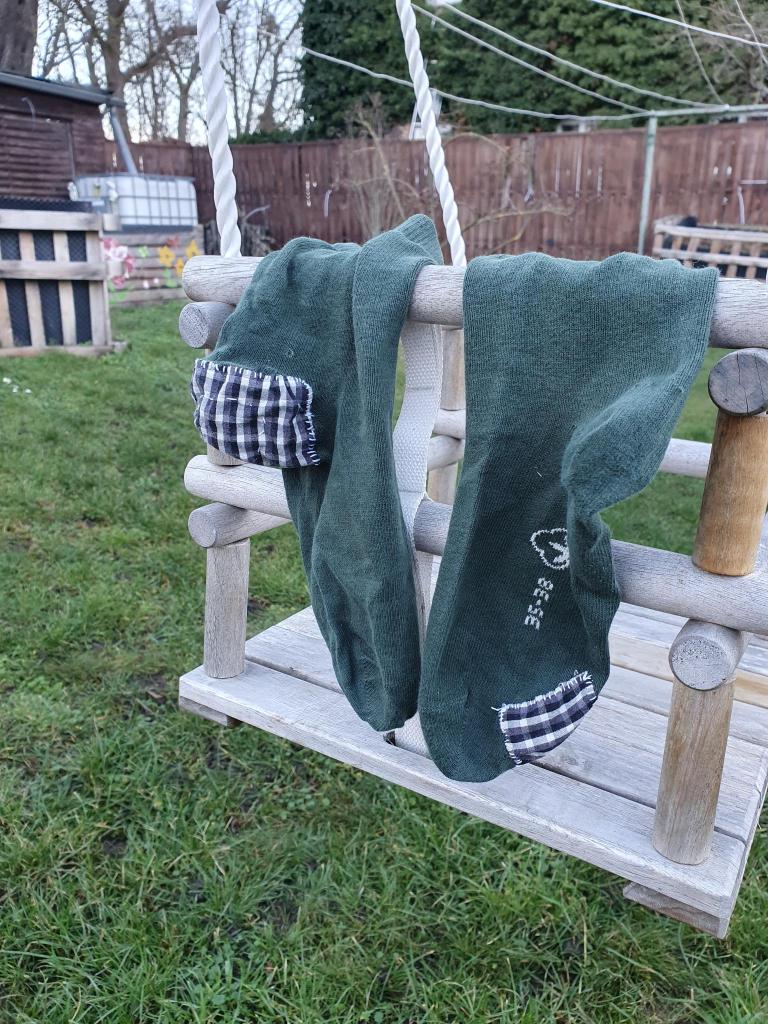 Oder ich habe noch immer nicht die richtige Technik, das kann sein. Darum habe ich diesmal an meinen kaputten Socken etwas neues probiert: