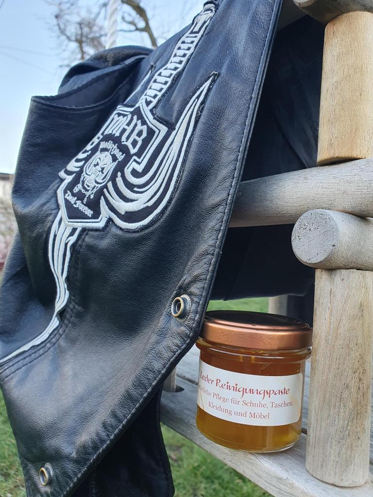 Zum Beispiel habe ich unsere Ledersachen mit natürlicher Pflege eingecremt. Das hat reinigende Effekte und macht dieses wertvolle Material langlebiger. Leder ist nicht unumstritten, da soziemlich jeder Arbeitsschritt der konventionellen Lederherstellung allen Beteiligten (Tieren, Arbeitern, Konsumenten, Natur) extrem schadet durch Verwendung starker Chemikalien und wirklich schlimmer Lebens- und Arbeitsbedingungen. Darum sollte man, wenn man Lederprodukte hat (alte Koffer, Gürtel, Jacken etc.) gut auf diese Acht geben! Denn Leder an sich, das kann ich nicht anders sagen, ist ein wundervoller, robuster und natürlicher Werkstoff.