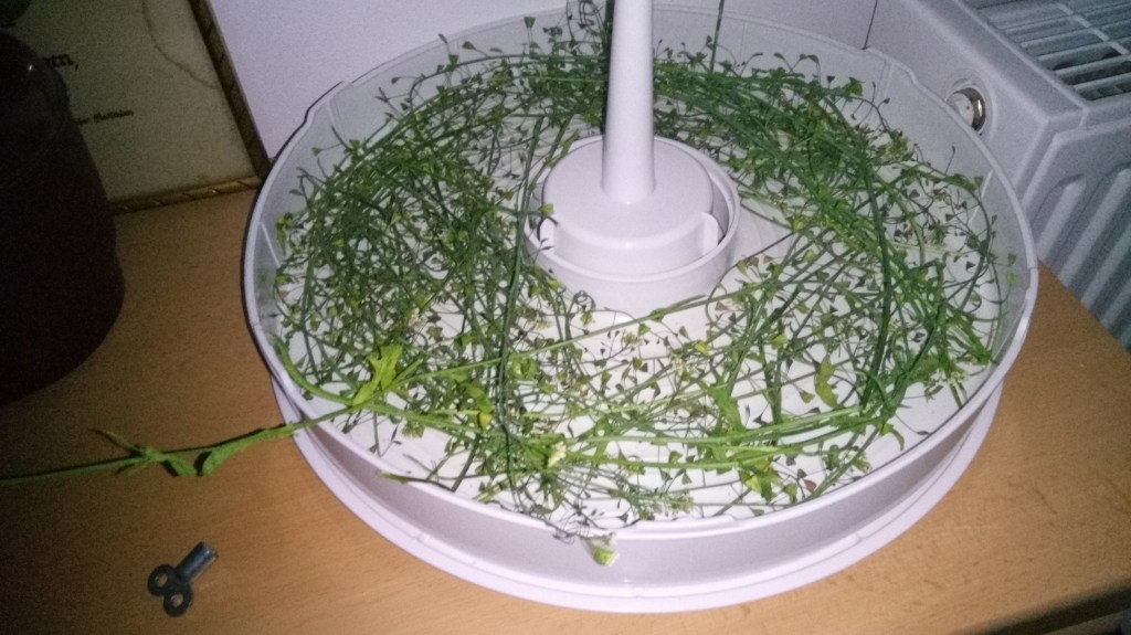Ich fragte kräuterkundige Bekannte, weil ich zwar schon öfter gesehen habe, dass diese Pflanze manchmal auch solche Schoten hat, aber aus Angst vor Verwechslungsgefahr gab ich nochmal das Bild weiter. Und tatsächlich: statt des blutstillendens Hirtentäschels hatte ich das leicht giftige Kraut Acker-Schmalwand gefunden. Ich dachte tatsächlich lange, dass diese Schoten eine Art Weiterentwicklung der herzförmigen Blätter seien, weil der Rest der Pflanze so ähnlich ist, dass selbst meine Schwiegermama dachte, es wäre das gleiche Kraut.