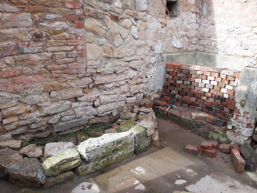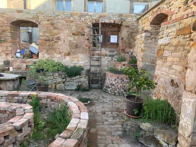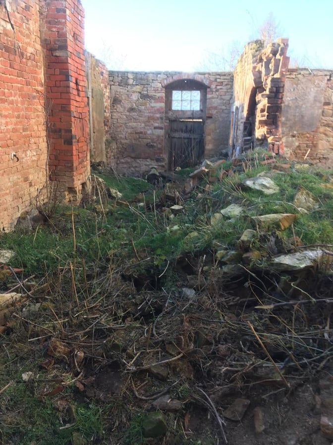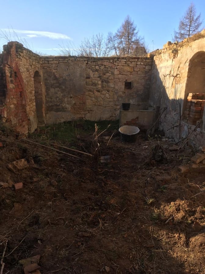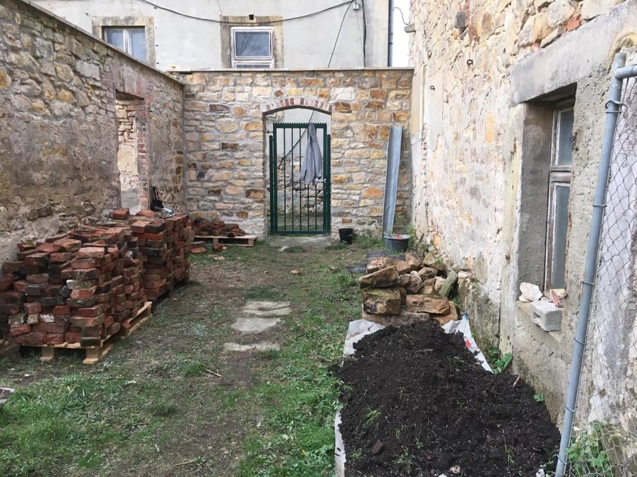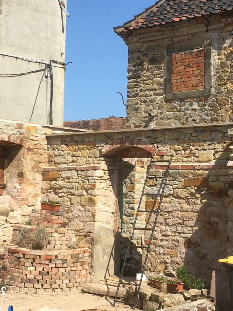 Das Haus stand seit 16 Jahren ohne Dach da, Seitdem hat sich dort allerhand angesiedelt an Dreck, Erde, Unkraut und Pionierpflanzen. Alle Steine und viele Restbalken sind dort unter diesen Dreckbergen. Niemand hat sich dafür noch interessiert. Am Anfang wurden bestimmt noch einige Balken oder brauchbare Ziegel rausgeholt, aber das ist lange her. Die Idee war also wirklich – verzeiht mir den Ausdruck – ein wenig irre. Alle anderen Freunde hatten höchstens ein Lachen übrig, was ihm da in den Sinn kam.