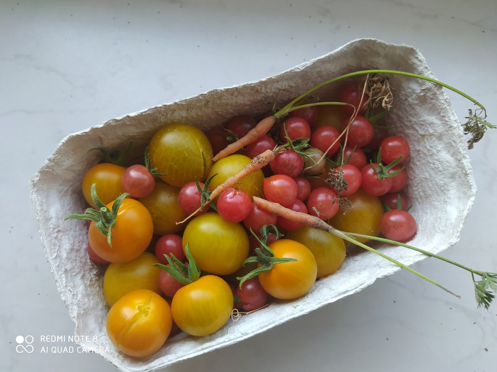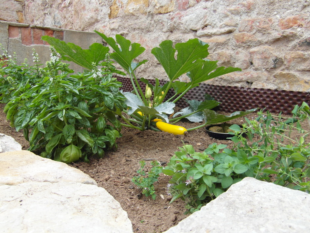 Ansonsten genießen wir einfach, was wir erreicht haben und versuchen immer mal wieder, zum pflegen und ernten da zu sein. Und zur richtigen Zeit wird wieder genug Energie da sein, um neue Ideen oder Nutzungsmöglichkeiten für den Garten zu finden. Bis dahin können alle Mieter im Wohnhaus nebenan dort gern ebenso wie wir ernten, sich wohlfühlen und bei guter Laune das ein oder andere Kraut aus den Fugen rausholen, denn den Boden wollen wir wirklich nicht wieder unter einem knappen Meter Erde begraben sehen 😉