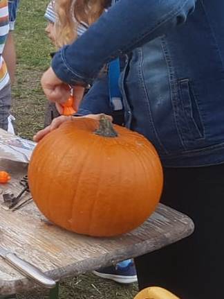 Nur wenige Wochen später fing alles an zu grünen! Es war wunderschön. Thymian, Minze, Salbei, Zucchini, Basilikum, ein Zitronenbaum. Dazu kamen auch ein paar Kürbisse, die wir auf einer freien Fläche in der Nähe anbauten. Denn dieser Kräutergarten gehört zu einem Verein. Unser kleiner Heimatverein „Zur Erhaltung und Förderung des ländlichen Raumes im oberen Allertal“, kurz EFRA, der sich zu dieser Zeit erst recht frisch gegründet hatte. Neben dem Garten, der als Vereinsprojekt gilt, wollten wir auch Feste veranstalten. Für das geplante Herbstfest wollte ich mit den Kindern im Ort Halloweenkürbisse schnitzen, was mit großer Begeisterung umgesetzt wurde!
