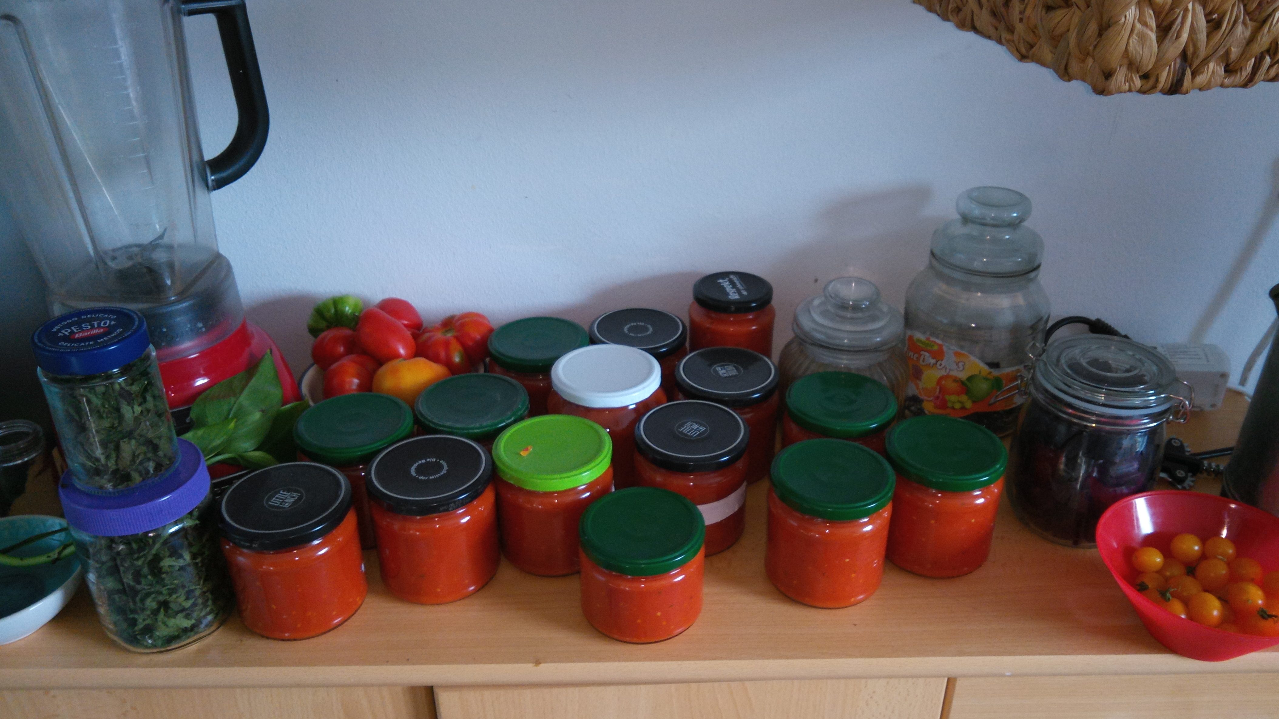 Die letzten Wochen habe ich beinahe jeden Tag etwas aus meinem Garten genießen können und es ist jetzt Mitte Dezember! Eingekochte Tomatensauce, Bohnen als Eintopf, eingefrorenes Pesto, natürlich reichlich Tee aus gesammelten Kräutern und auch noch immer eigene Tomaten, die nach und nach rot werden.